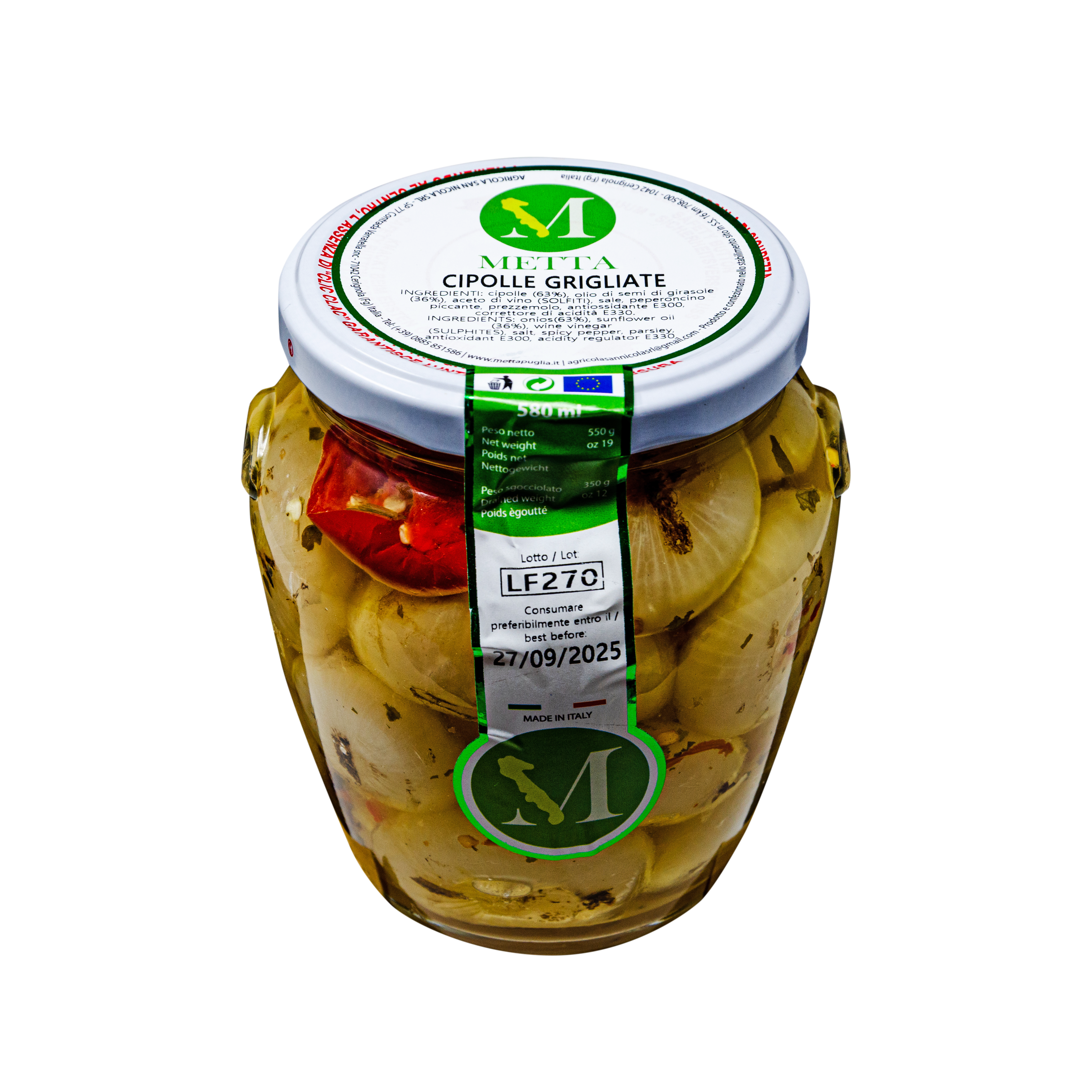 Cipolle (62%), olio di semi di girasole (36%), aceto di vino, sale, peperoncino piccante, prezzemolo, antiossidante E300, correttore di acidità E330.